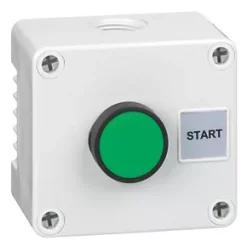Palm / foot switch station with a large dome head. Includes 1 normally open and 1 normally closed contact block, 2 x M20 threaded and 1 x M20 non-threaded cable entry knockouts.